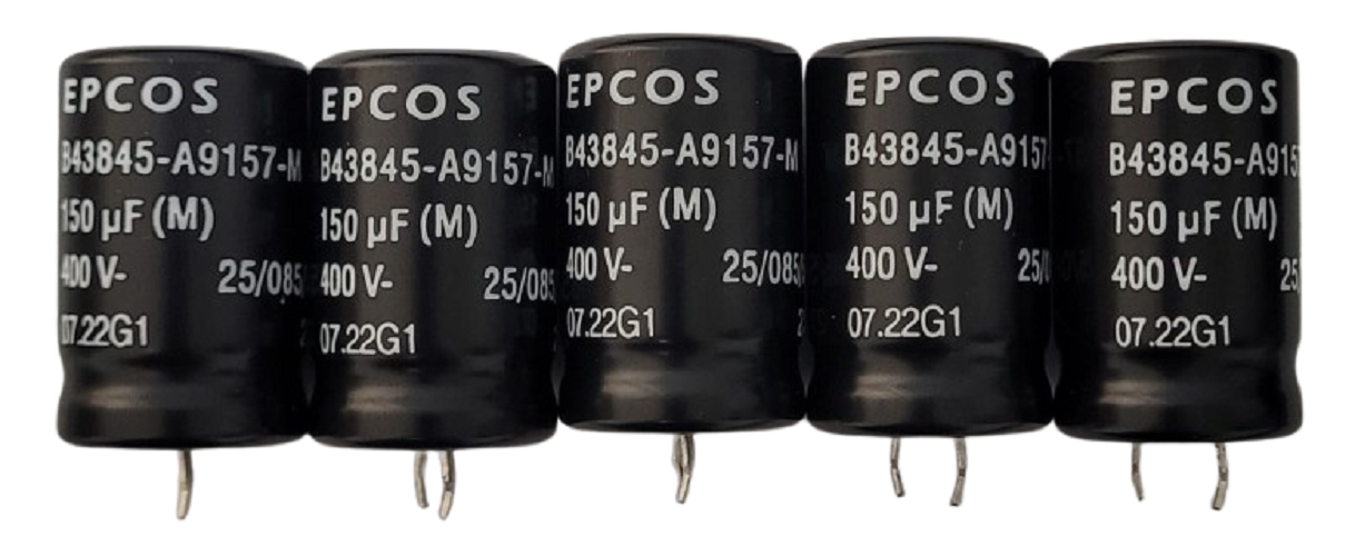 KIT COM 5 PEÇAS DO CAPACITOR 150UF 400V 85°C RADIA SNAP IN EPCOS